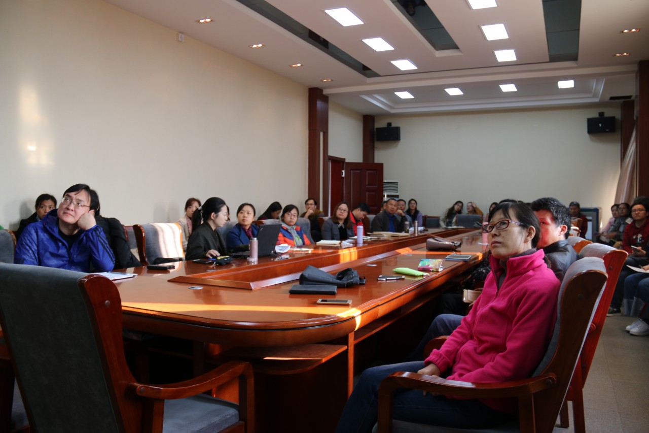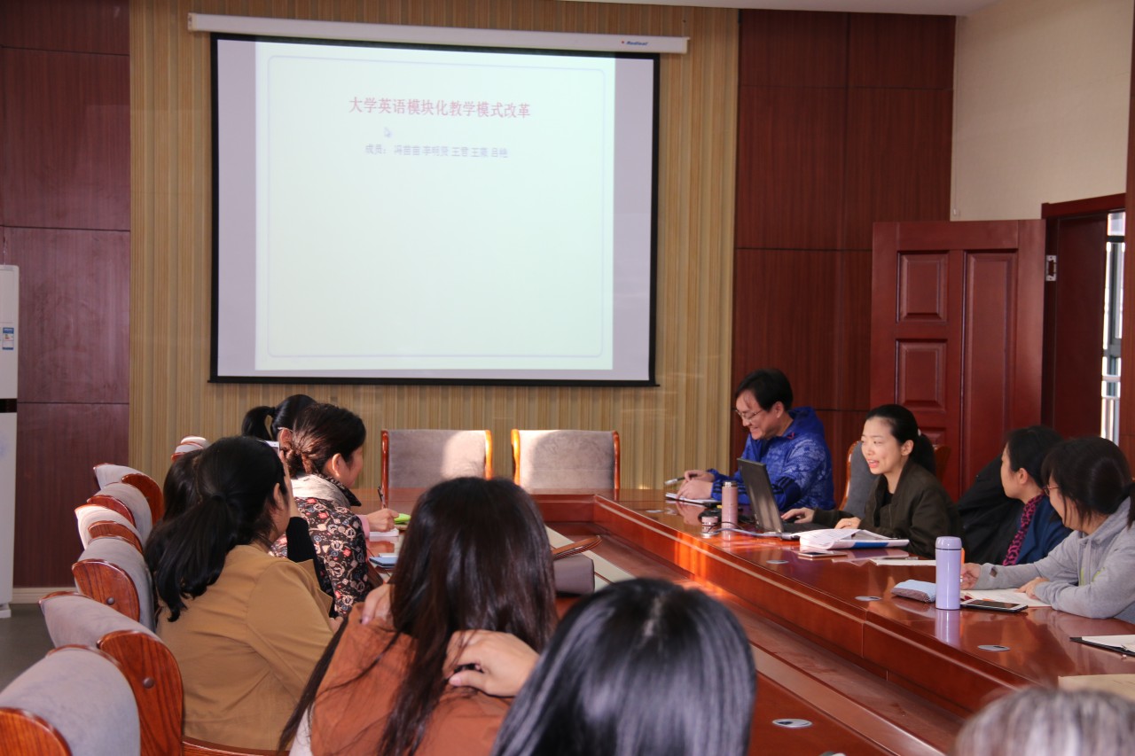 10月31日下午,冰球突破mg正规官网公共外语教学部在学院会议室522举行第二期“乐教”讲坛,由公共外语教学部副主任陈超主持, 公共外语教学部全体老师参加。