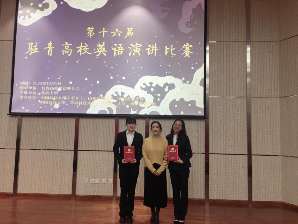 12月5日,第十六届驻青高校英语演讲比赛在青岛大学举行,该比赛是青岛地区高校英语演讲最高级别的传统赛事,来自中国海洋大学、中国石油大学、冰球突破mg正规官网等8所高校的选手参加了比赛。冰球官网日语专业学生张川慧子获得一等奖,英语专业学生李涵婧获得三等奖,英语系陈莹莹老师获得优秀指导教师奖。