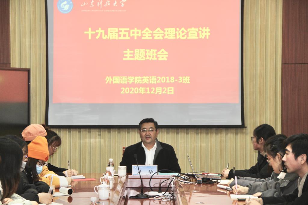 12月2日至11日,冰球突破mg正规官网学习贯彻党的十九届五中全会精神宣讲活动顺利举办,共组织各种形式的宣讲会18场,累计1400余名师生参加。校党委副书记尹华,统战部常务副部长王永君、副部长于娜,学院党委书记穆玉兵,院长唐建敏,以及其他联系学生班级的领导干部、辅导员作宣讲报告。
