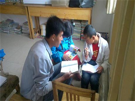 8月10日上午课间休息时间,队员刘雪凝在教室上看到了这样的一幕:几名学生在教室里接受队员姜继利的课外辅导,他们还时不时互相开心的讨论着。见到此景,我们瞬间觉得一阵酸意涌上心头。这些孩子每天除了在学校的时间,回家后都要做家务,想学习都没有时间,只能抓紧在学校的分分秒秒,尽可能的多学一点。