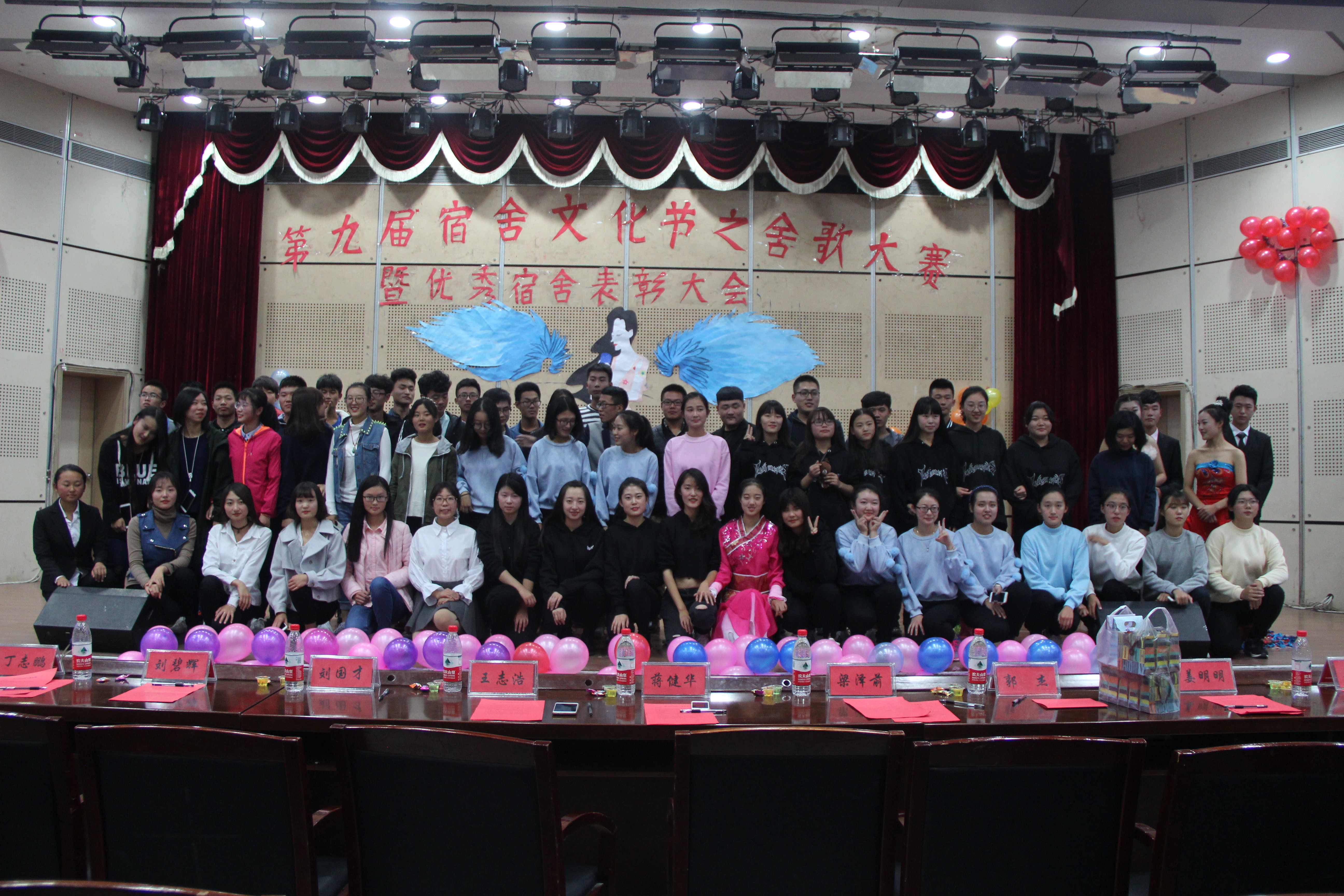 为了展示宿舍文化,丰富学生课余生活,10月30日,由冰球突破mg正规官网团委主办,冰球突破mg正规官网自律会承办的第九届宿舍文化节之舍歌大赛暨优秀宿舍表彰大会在大学生活动中心二楼报告厅举行。出席本次比赛的嘉宾有校自律会副主任夏晓雨,校楼管会主任刘国才,冰球突破mg正规官网自律会主任王志浩及数学学院、化工学院、电子学院、矿业学院、计算机学院、地科学院、材料学院的自律会主任等。